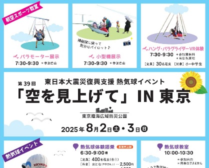 8月2日(土)・3日(日)に有明・東京臨海広域防災公園で、熱気球イベント「空を見上げて」 IN 東京が開催されます。